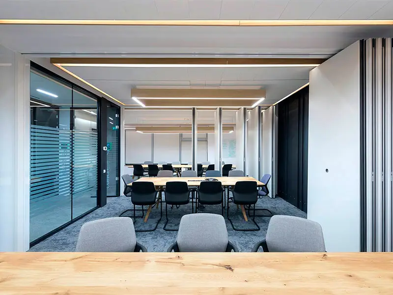 Salas de reuniones polivalentes: aquí funcionan muy bien los tabiques móviles para adaptar el espacio según el número de personas o el tipo de uso.